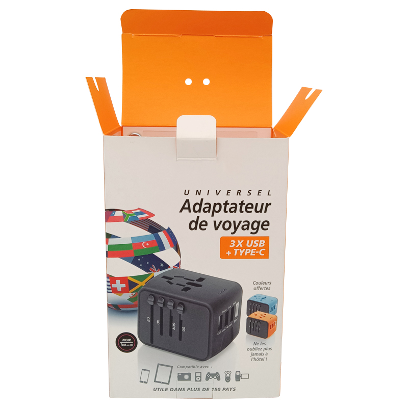 Factory Custom phone Charger USB Cable packing boxes printing headphone travel adapter box with handle
